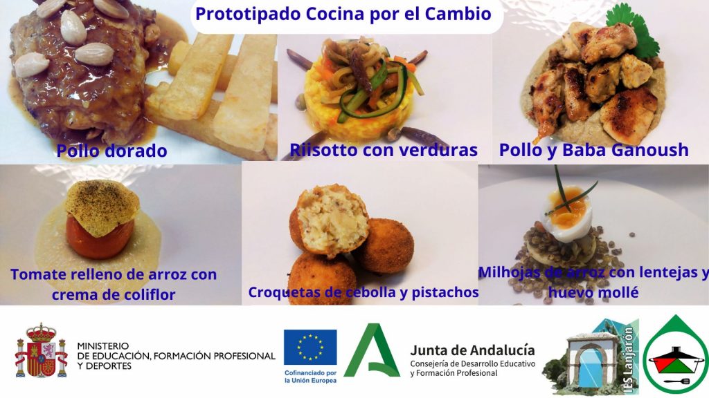 El alumnado de Grado Medio de Cocina y Gastronomía se unen al CPIFP Hurtado de Mendoza (Granada), IES Alminares (Arcos de la Frontera – Cádiz) e IES Ángel Ganivet (Granada) para crear un recetario didáctico destinado a la escuela de cocina que la Asociación sin ánimo de lucro “Cocina por el cambio” está creando en los campamentos saharauis (Tindouf, Argelia).